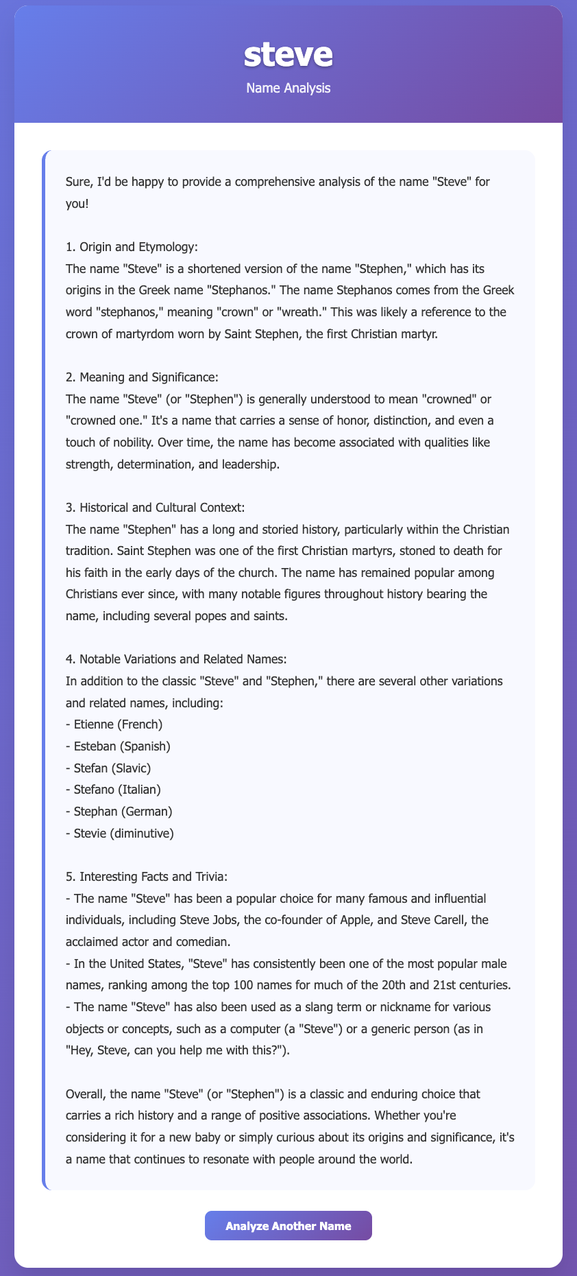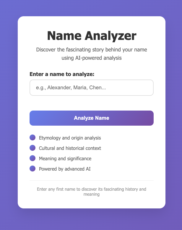 2. Uses Anthropic Claude API to analyze the name's origin and meaning