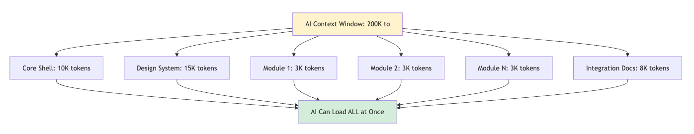 Modern AI coding assistants (Claude, GPT-4, etc.) have a fundamental limitation: context window size. Even with 200K token windows, large enterprise applications exceed what an AI can comprehend in a single session.