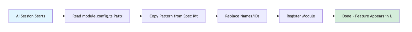 Each module requires one import and one registration call. The registry then handles all lifecycle management, dependency checking, and dynamic composition. The uniform pattern means adding a new module is literally two lines of code.